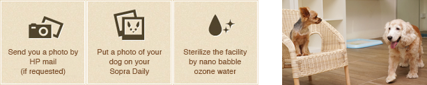 Sopra Ginza would like to create a safe, relaxing and stress-free environment for you and your pet. We provide a healthy and happy cage free daycare so that your dog will enjoy socializing and playing with other friends.